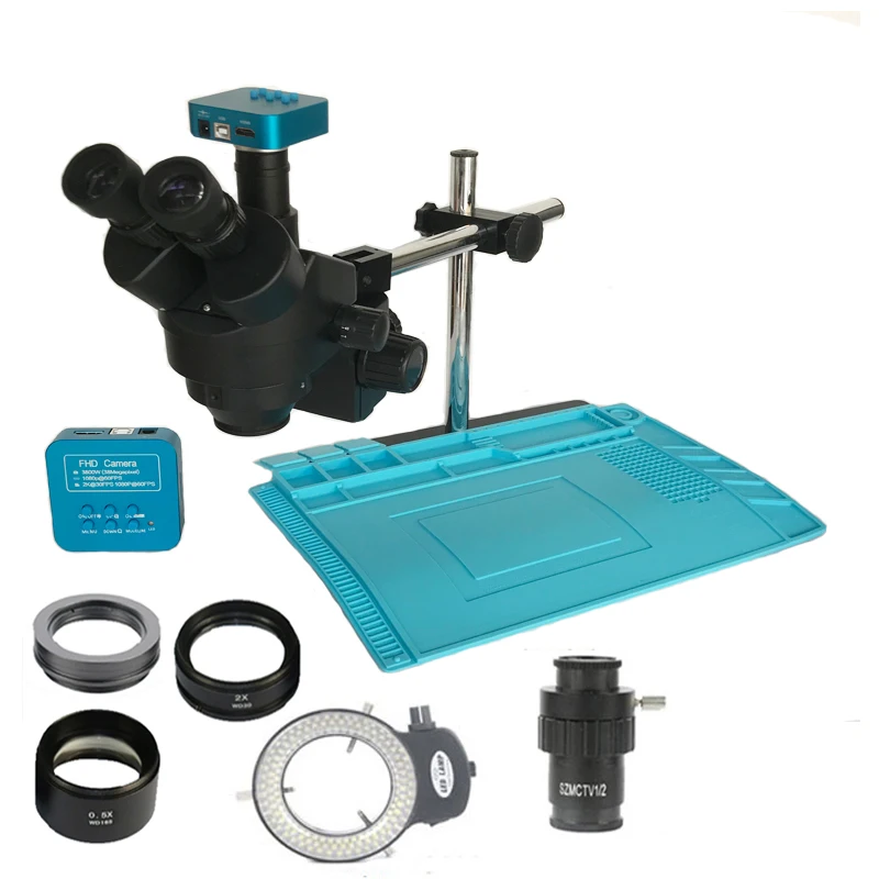 3.5X 7X 45X 90X simul-focal Trinocular Stereo Microscope 13MP 720P HDMI VGA digital microscope camera BAG Soldering heat pad mat : Click Here